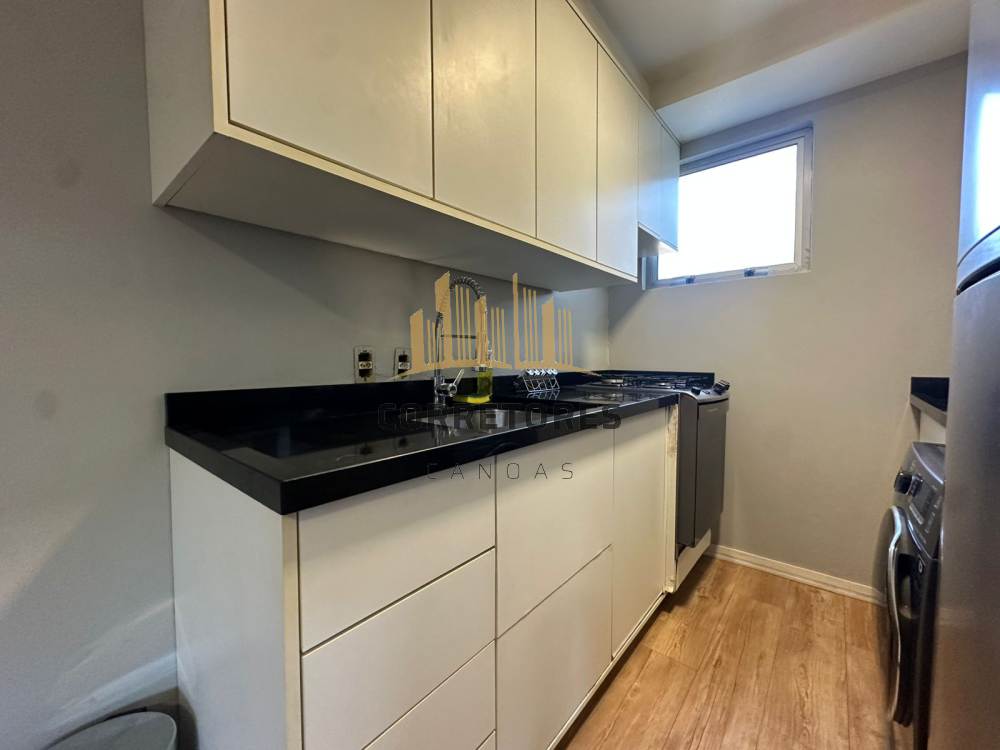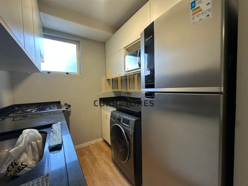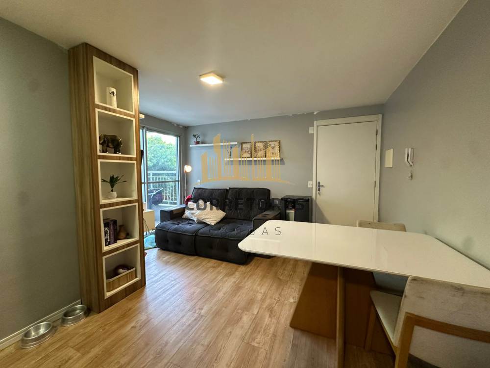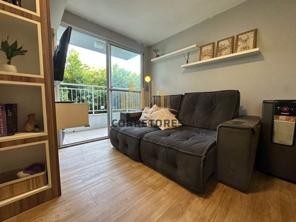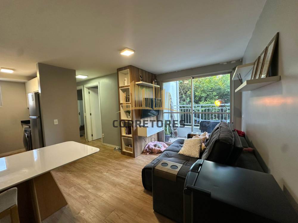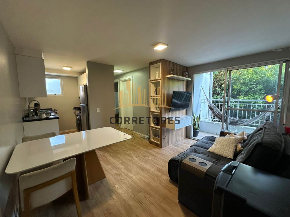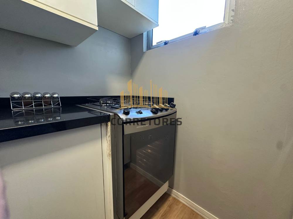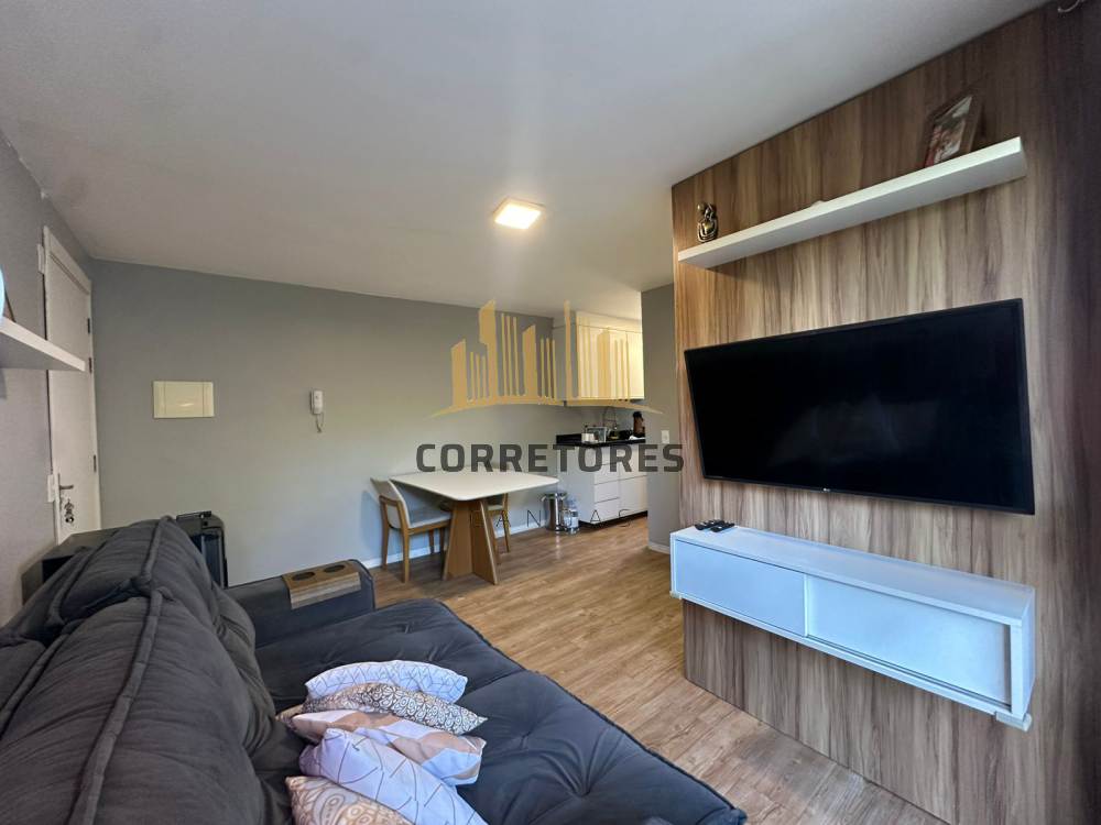 Apartamento com sacada, dois dormitórios, sala integrada à cozinha, semi mobiliado.