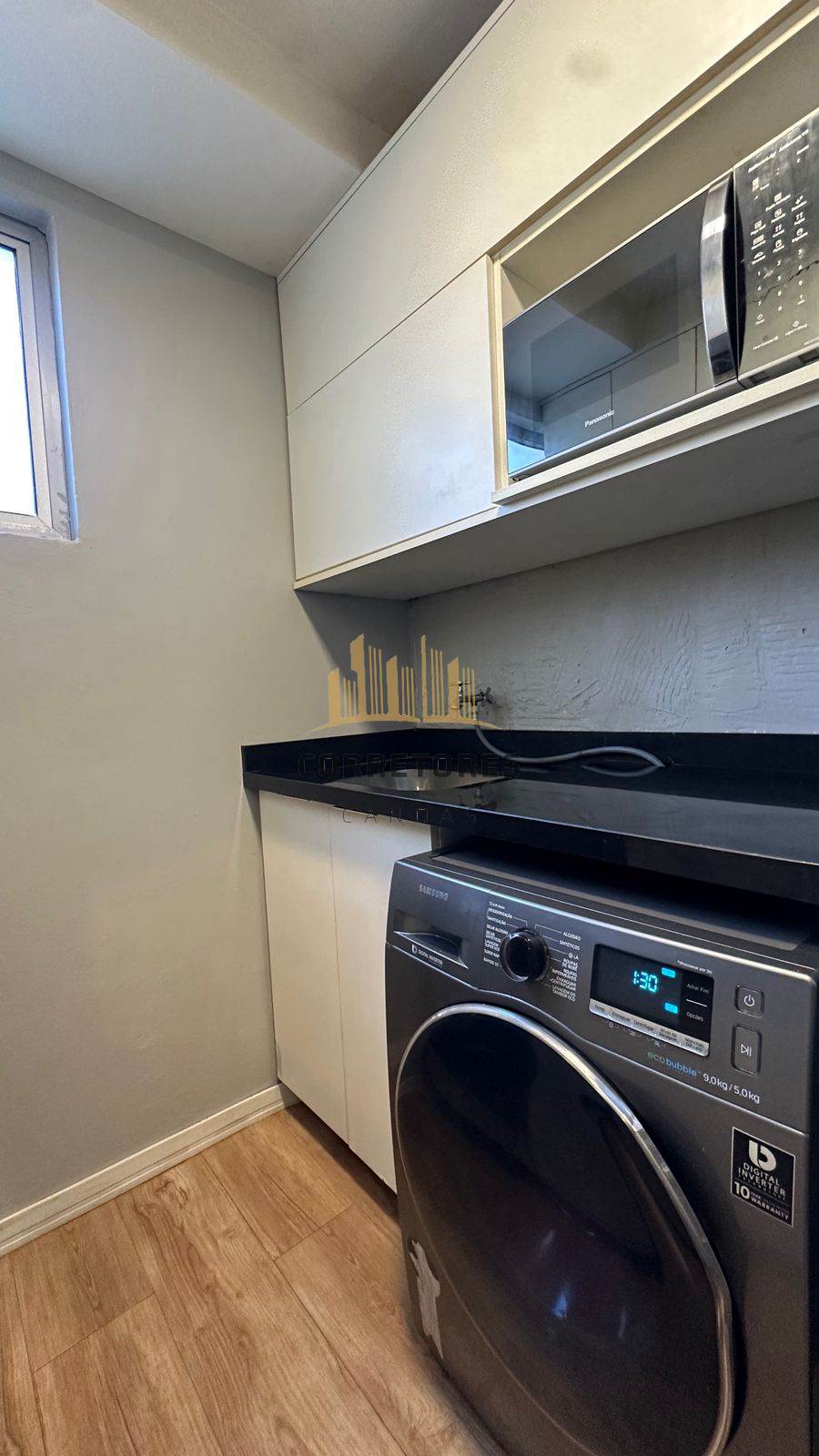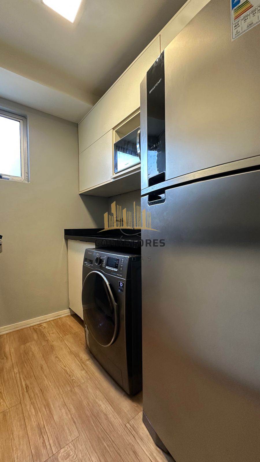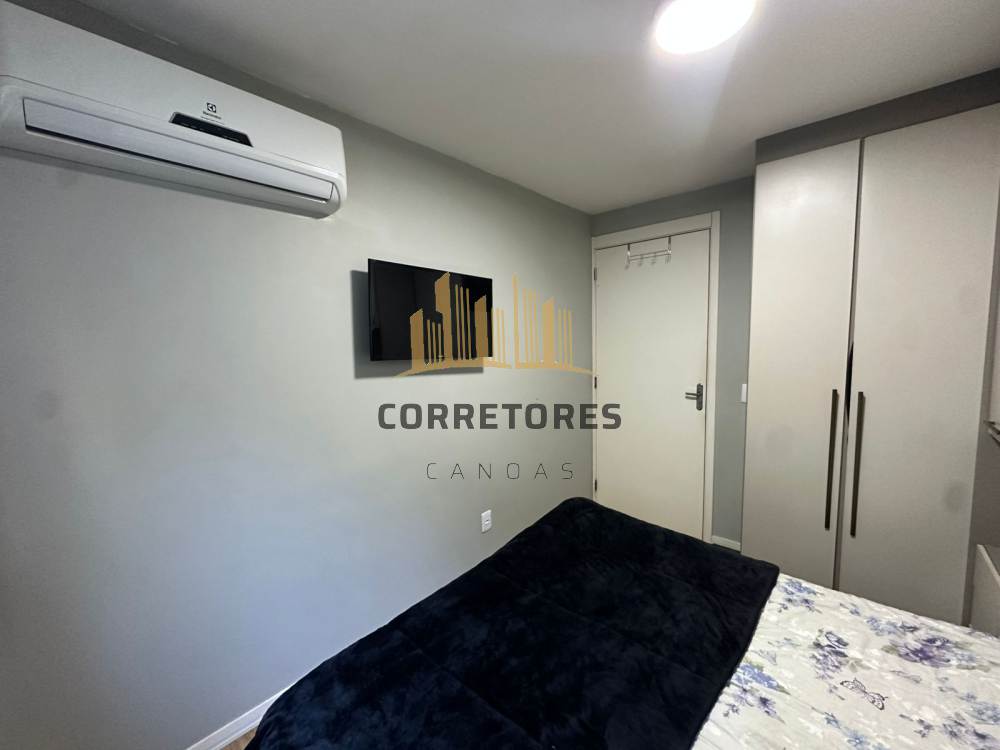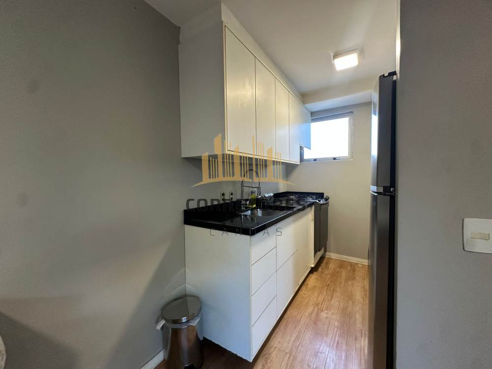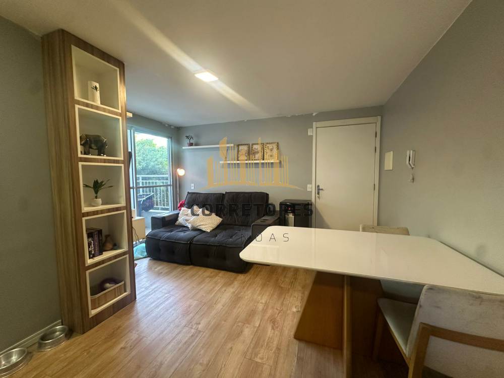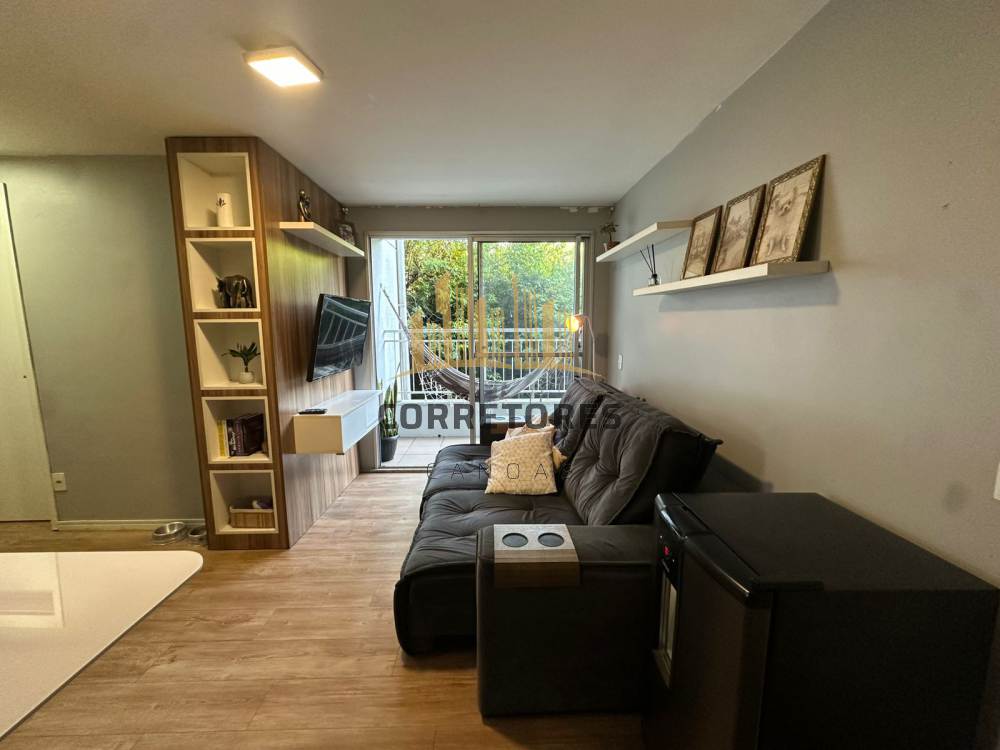Apartamento com sacada, dois dormitórios, sala integrada à cozinha, semi mobiliado.