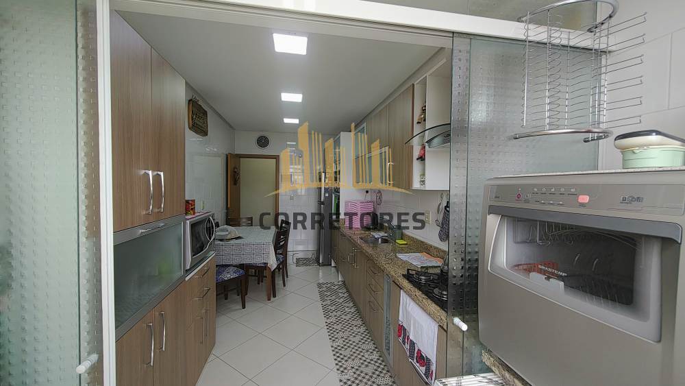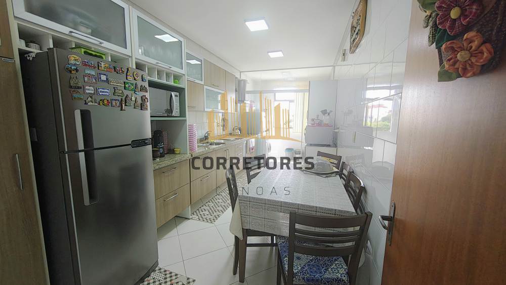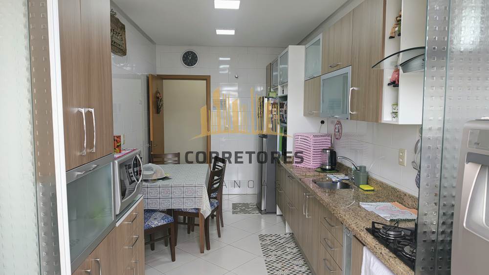 São 03 dormitórios (01 suíte), living com salas de estar e jantar, banheiro social, área com churrasqueira e pia de apoio, área de serviço integrada a uma ampla e bela cozinha. Possui um ótimo padrão de construção e de acabamentos, pé direito com 2,80, água quente (junker), rebaixos em gesso, aberturas em alumínio bronze...