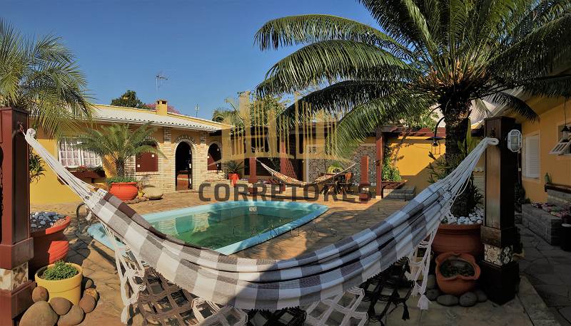 Excelente Estado de conservação, 220m², terreno com 510m2 (15x40), estar com lareira, jantar, cozinha, banho social, suíte com hidro, varandas, pergolados, piscina, salão de festas com banheiro, garagem coberta para 3 carros, lavanderia, espera para split´s, piso porcelanato, jardim com paisagismo, sistema de segurança;
