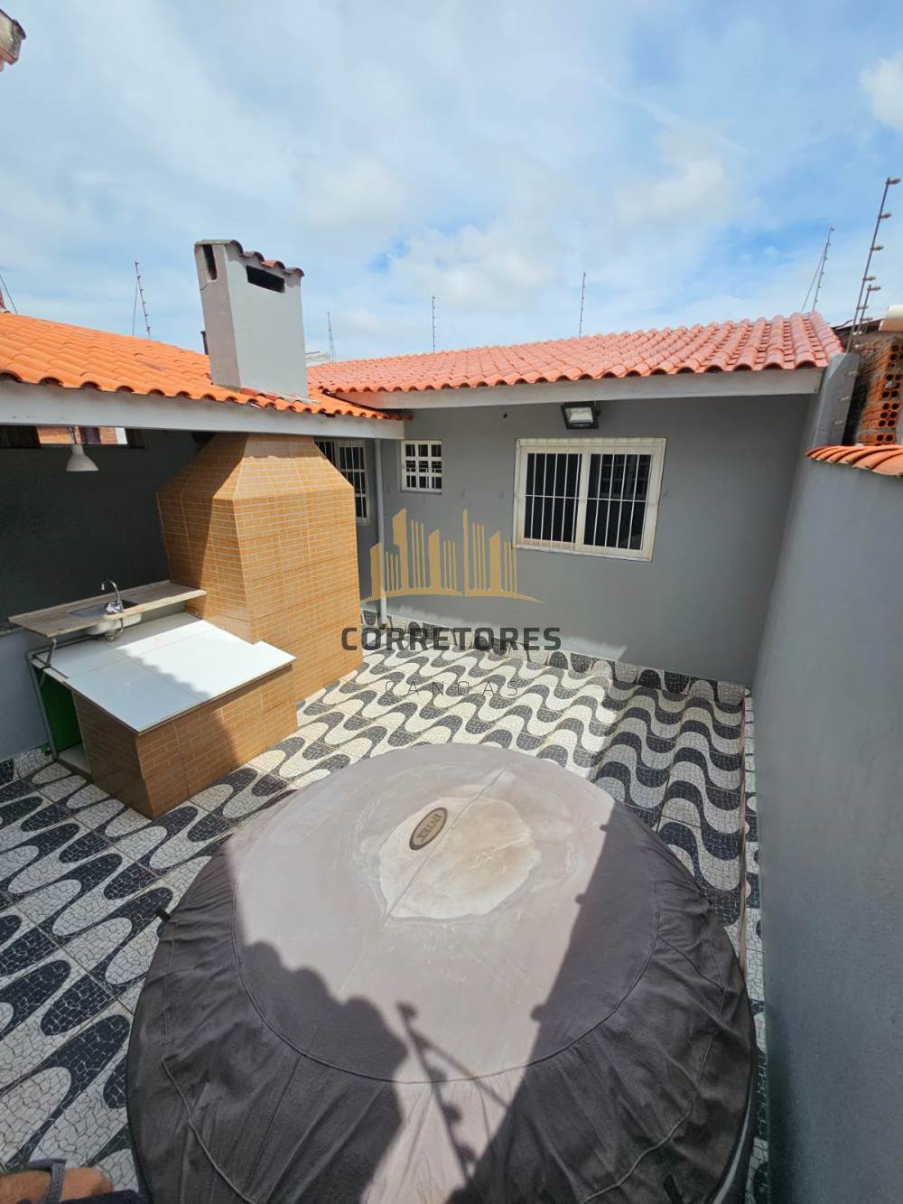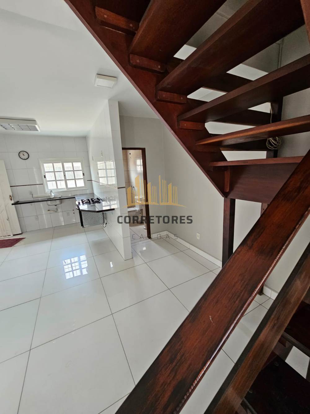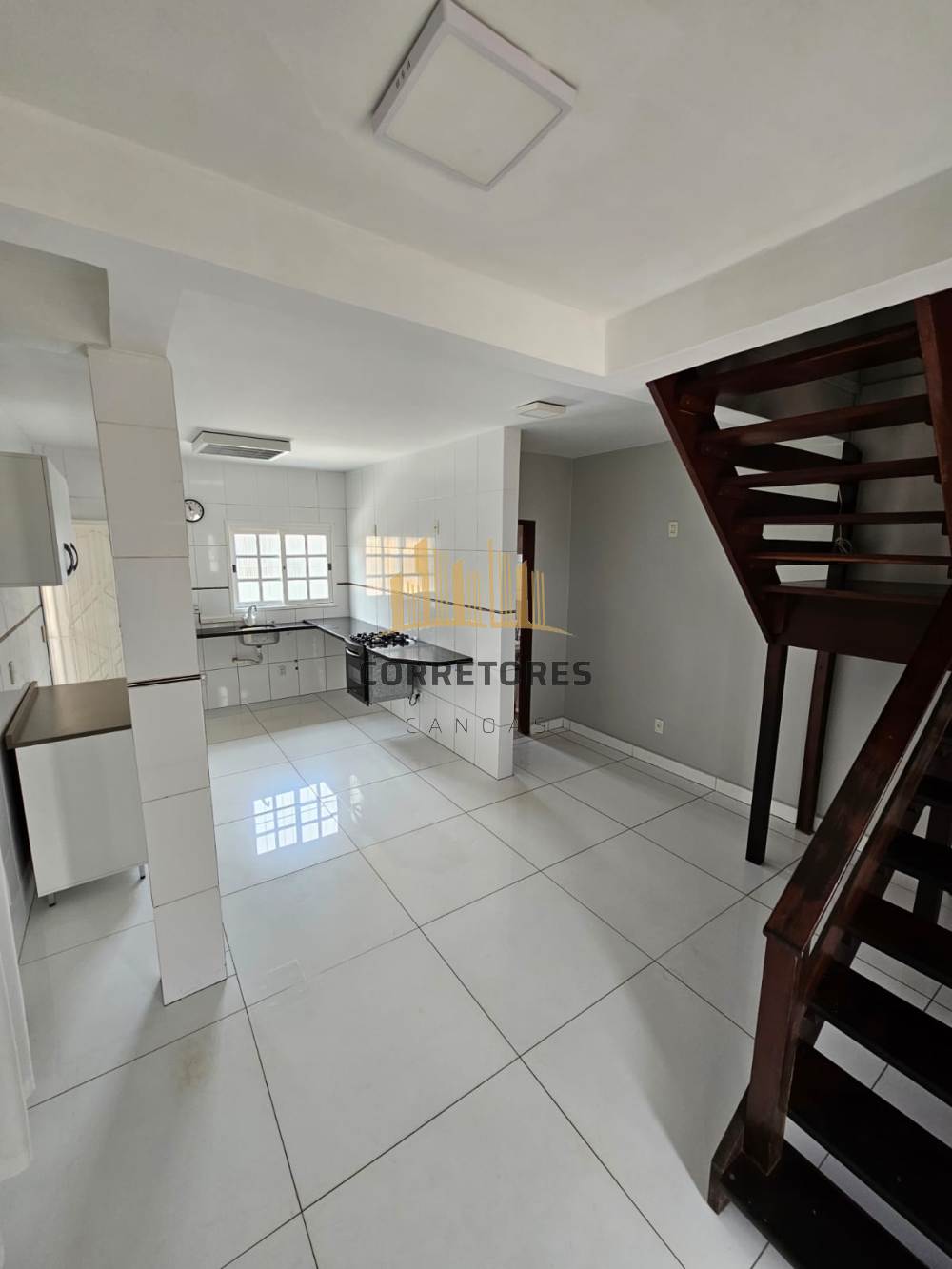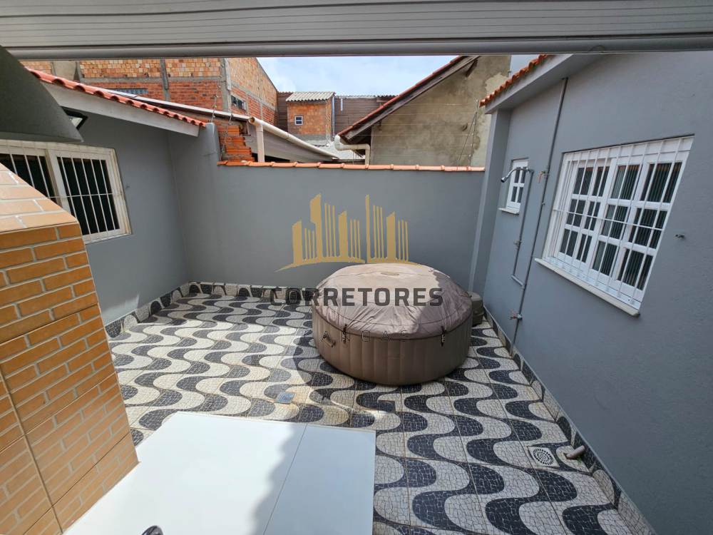 O andar inferior é composto por cozinha integrada com a sala de jantar e mais um banheiro. Possui vaga de garagem coberta para 3 veículos e churrasqueira.