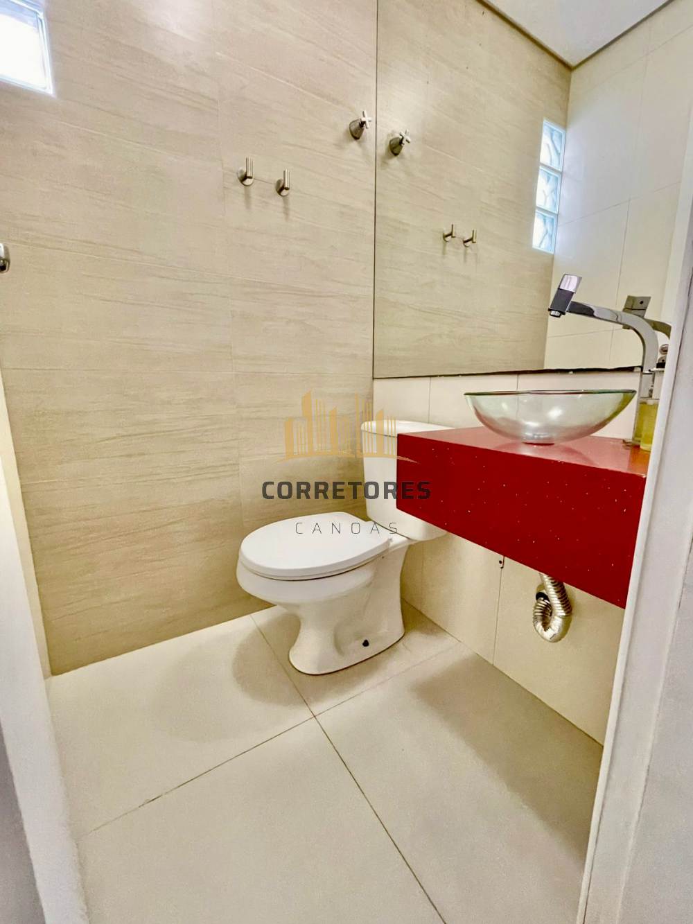 Corretores Canoas vende sobrado semi mobiliado em condomínio, com 02 (dois) dormitórios sendo os 02 (dois) suítes, cozinha planejada, sala, lavabo e vaga para carro. O condomínio é pequeno e não tem valor de taxa de condomínio.